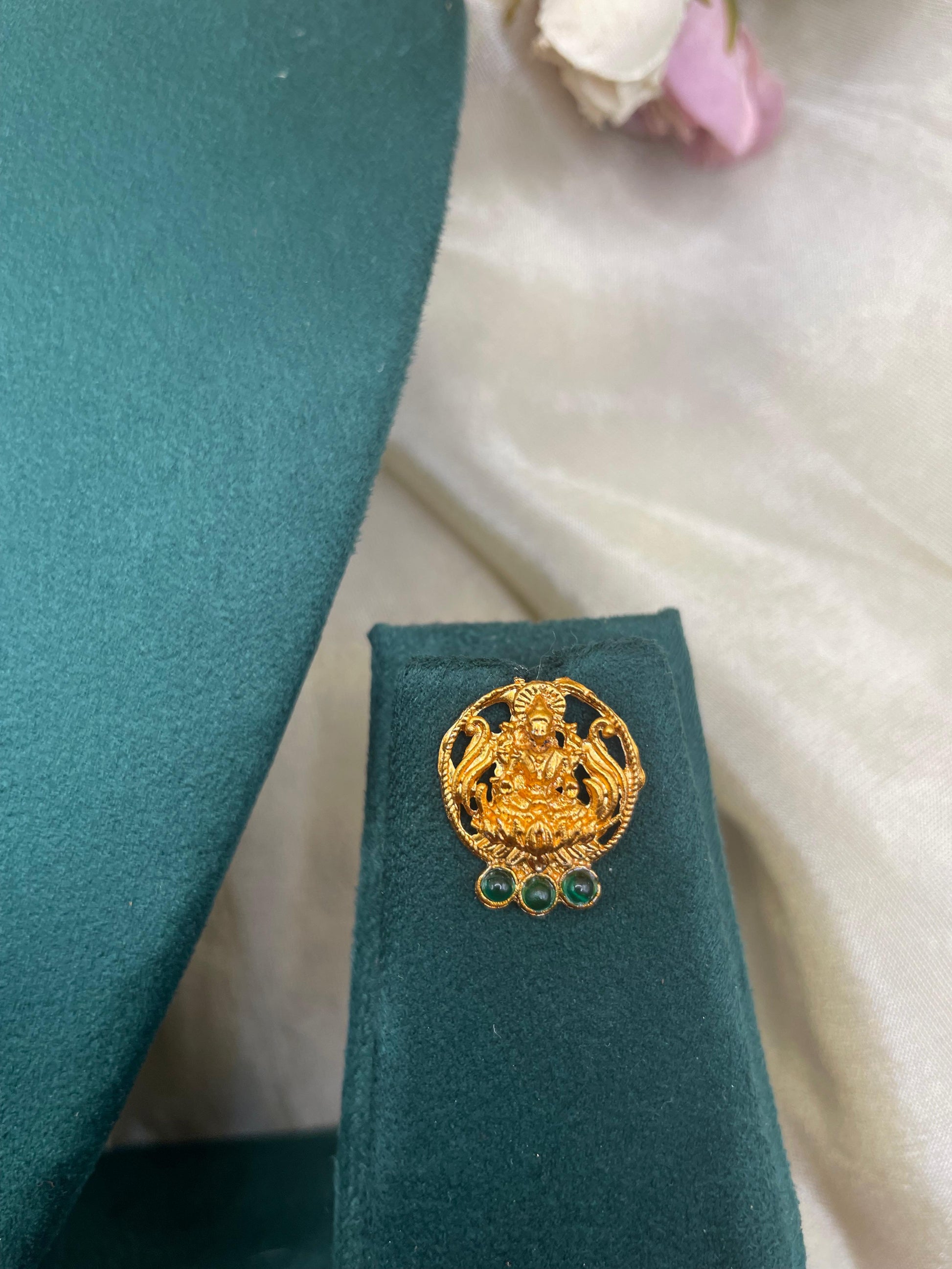 Radiate elegance with this stunning Lakshmi choker, adorned with green enamel detailing and lustrous pearls.