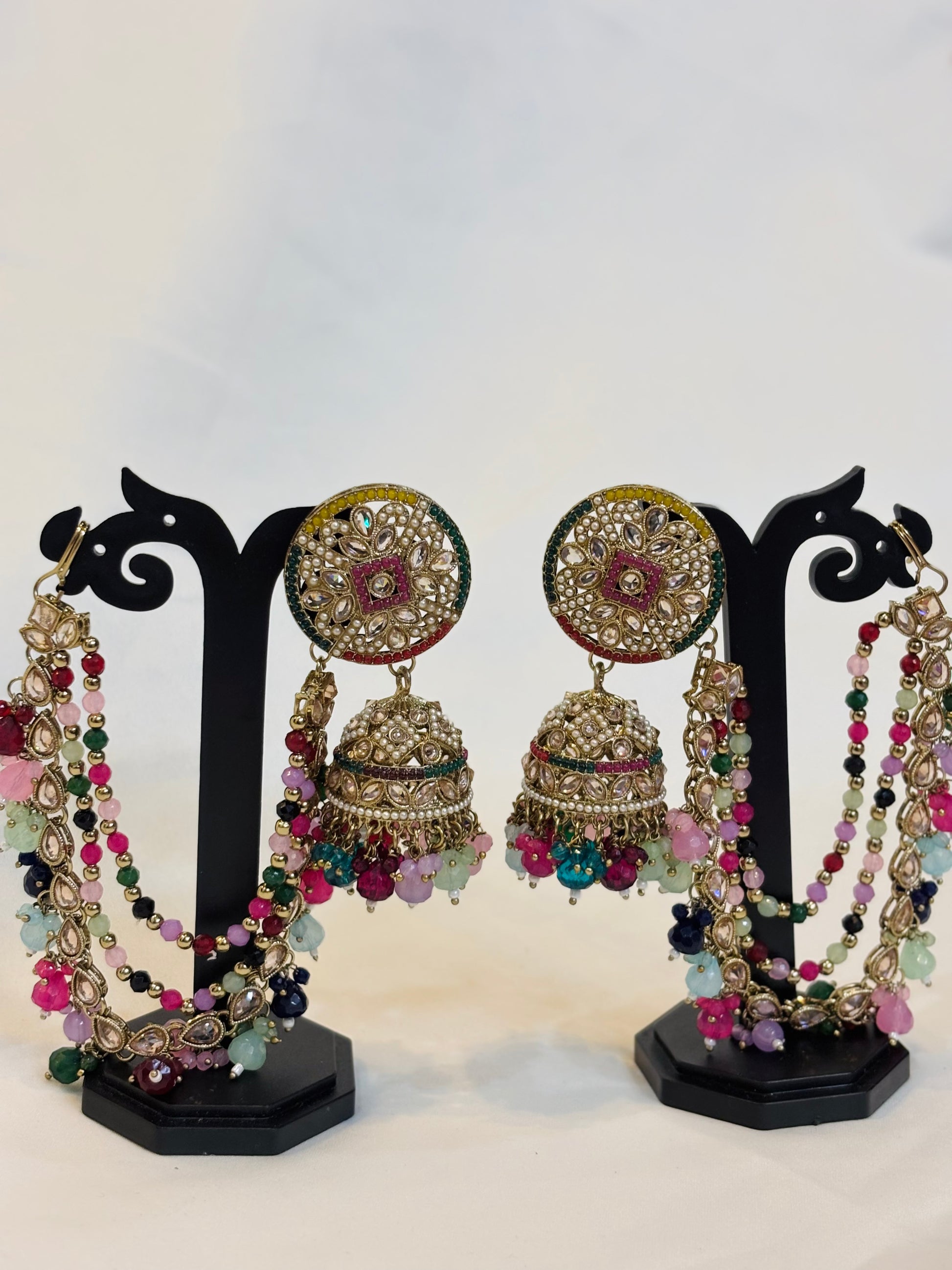 Multicolor Kundan Jhumka & Maang Tikka Set
